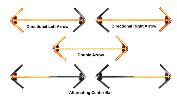 Four directional patterns: center out double arrow, right arrow, left arrow and alternating center bar.