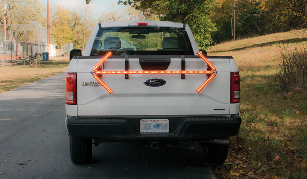 The LED Portable Folding Directional Arrow is easy to transport and simple to store. It easily expands from 7-1/4" H when fully closed to 17-1/2" H when open.
