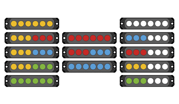 - Create an effective warning display with split arrays in your choice of amber, blue, green, red and white.